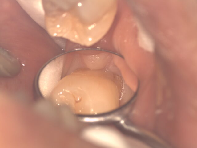 鏡を使って歯の裏側を覗き込むと、ようやく虫歯が確認できました。