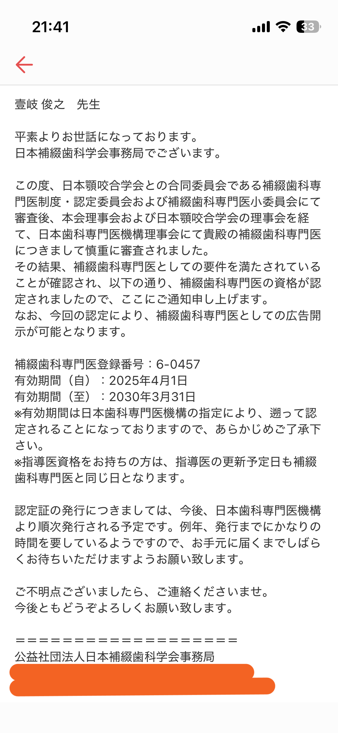 この度、国の認定制度である「日本歯科専門医機構」による 補綴歯科専門医として正式に認められました。 近年、専門医制度は国の基準に基づく新しい仕組みに移行し、 従来の学会認定専門医から、国が認める専門医への更新が必要となりました。 そのため昨年より、 すべての審 … 続きを読む 補綴歯科専門医に認定されました